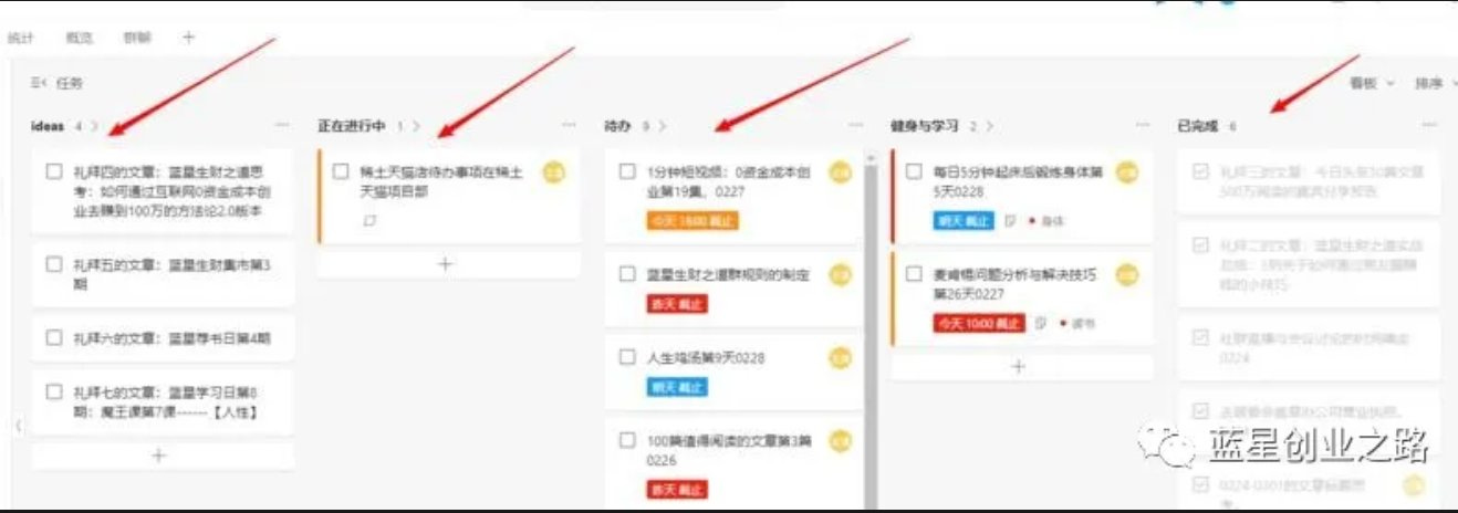 而一页纸项目管理,是教会你管理项目的,是有利于执行的。即使一个人做事,也要乃至项目管理里面的方法论,何况是多人团队协作沟通了。像蓝星生财之道,就利用的下面的trello软件管理自己,以提高自己的执行力。