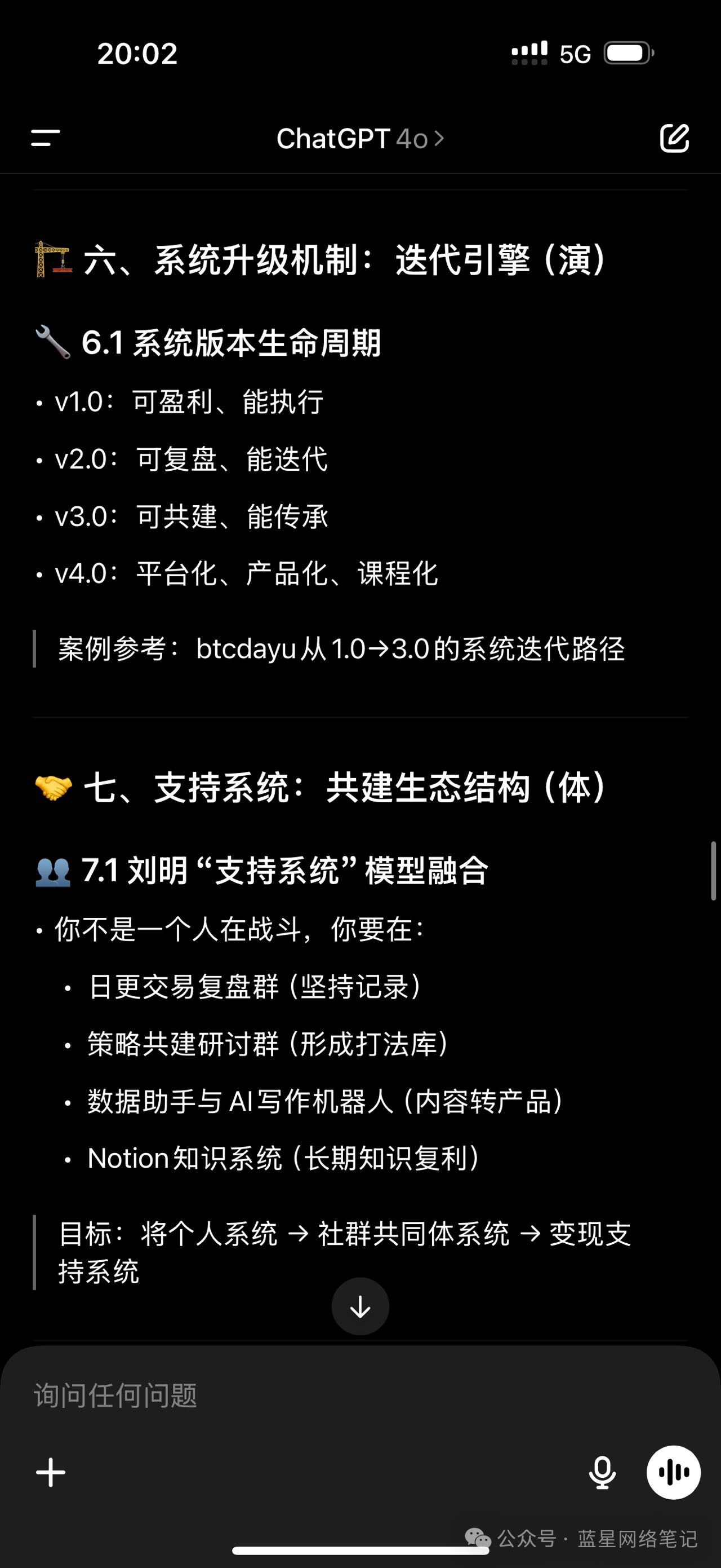 根据我这两三个月来的实践吧,如果你想利用ChatGPT搞钱,那么内容化、产品化、工具化、系统化、平台化、生态化,这几个字,就是一个搞钱的方法论,是可以让你去给ChatGPT下达指令的思路!